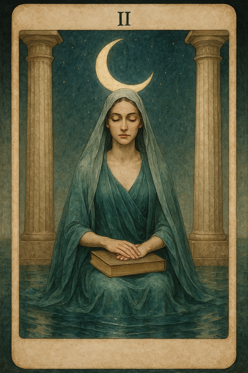 Číslo 2 je v tarotu spojováno s archetypem Velekněžky. Ta symbolizuje ticho, vnitřní moudrost a schopnost naslouchat tomu, co není slyšet nahlas.