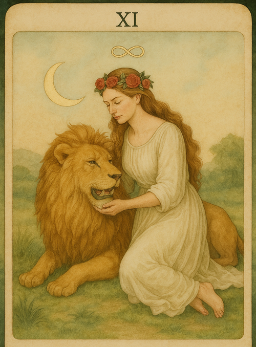Číslo osobnosti 11 je spojeno s kartou Síla, archetypem vědomé moci, odvahy a schopnosti zkrotit instinkty bez násilí. Tato energie se projevuje navenek – v charismatu, přitažlivosti a silné životní energii, kterou ostatní intuitivně vnímají.