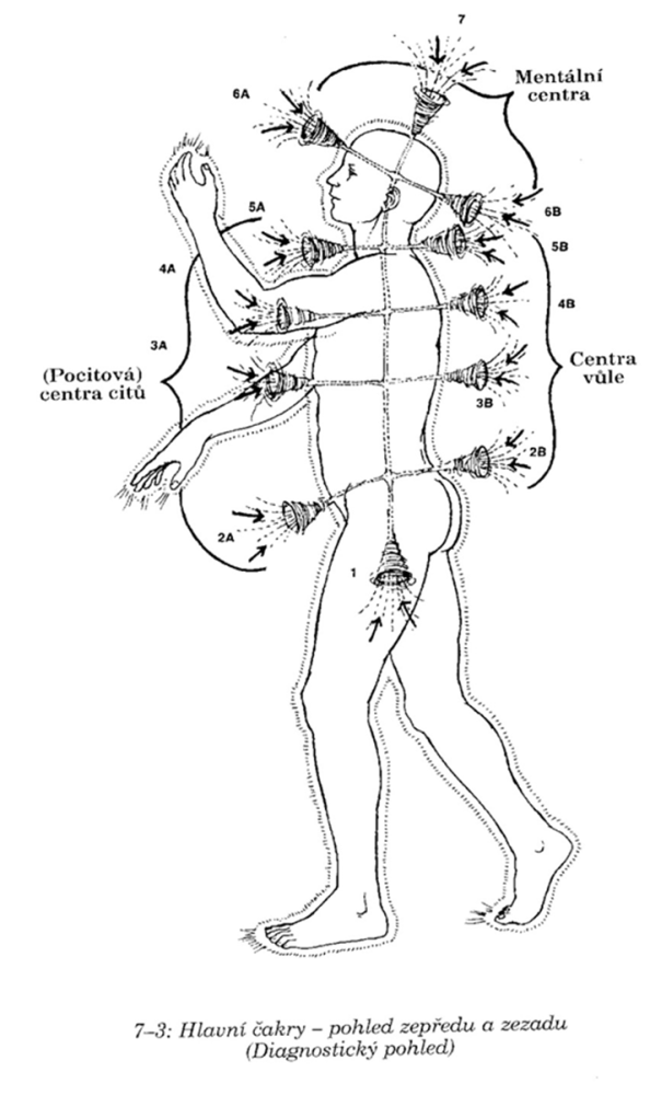 1.čakra - na konci kostrče a pouze ze zadní části těla (případně nad pupek - při nedostatku energie).
